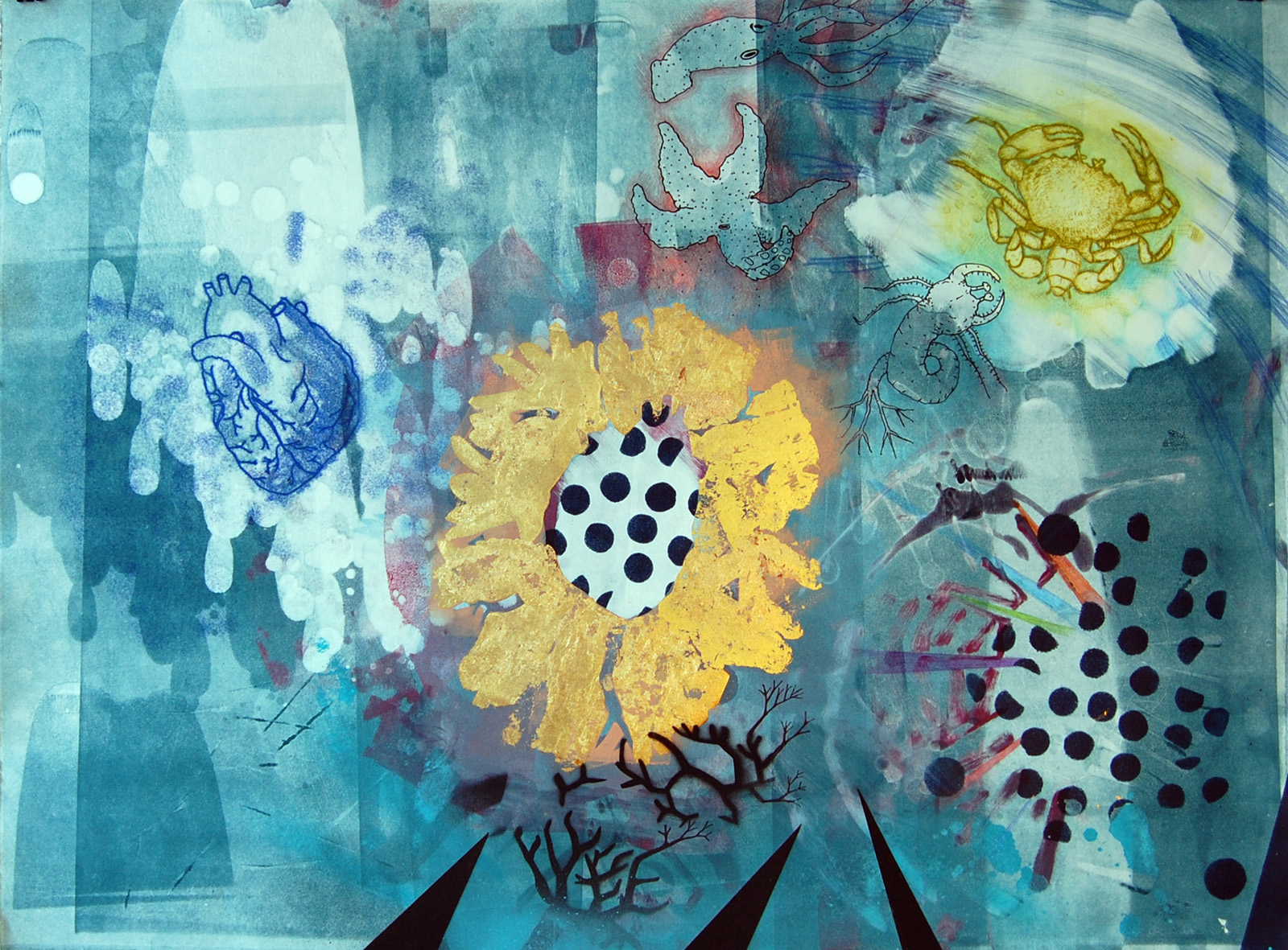 monoprint w/ drypoint and gold leaf, 22" x 30", 2010